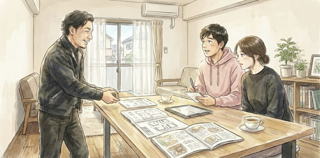 3社目は由健さん。第一印象は「素敵な方」。初対面でも話がしやすかったですね。A社さんと違い、営業も現場監理も全て由野さんが担当してくれるとのことで安心感がありました。