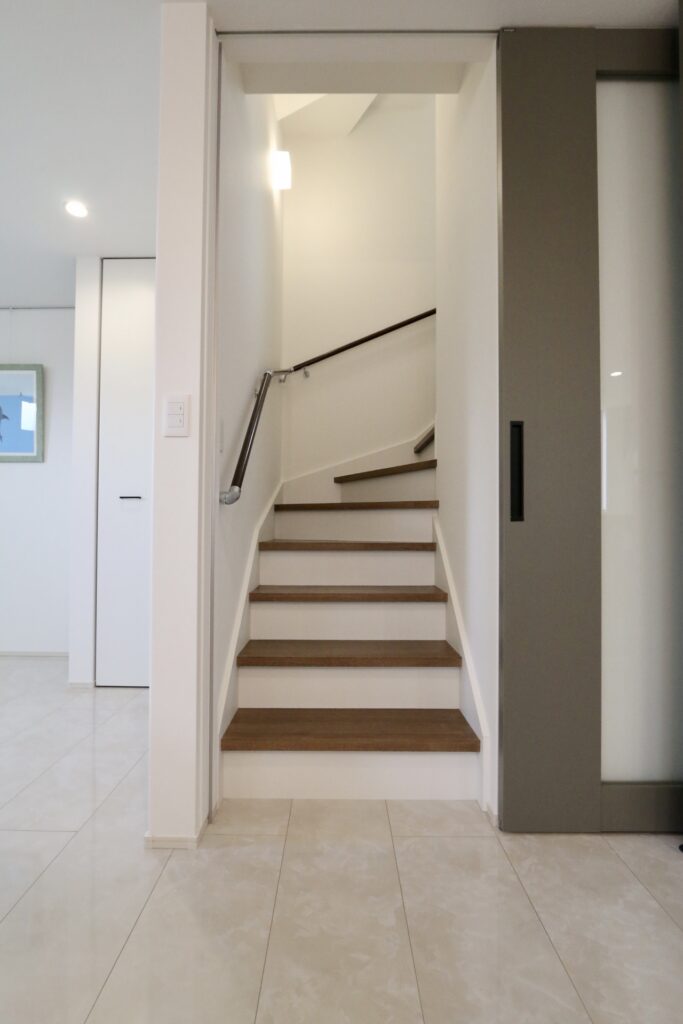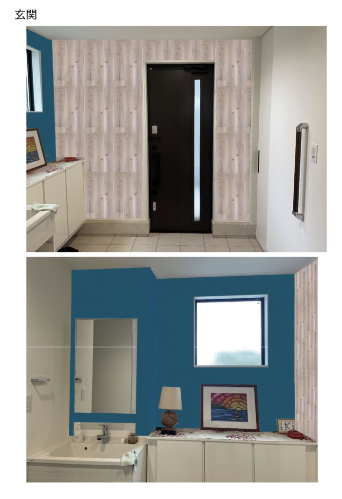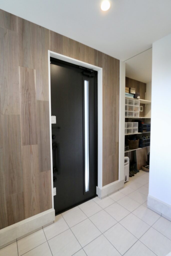 この家は元々白基調だったので、木の雰囲気を足したいという思いがありました。玄関も真っ白だったのを無垢の素材感を感じられる足場板を貼る提案を、池田さんからいただきました。