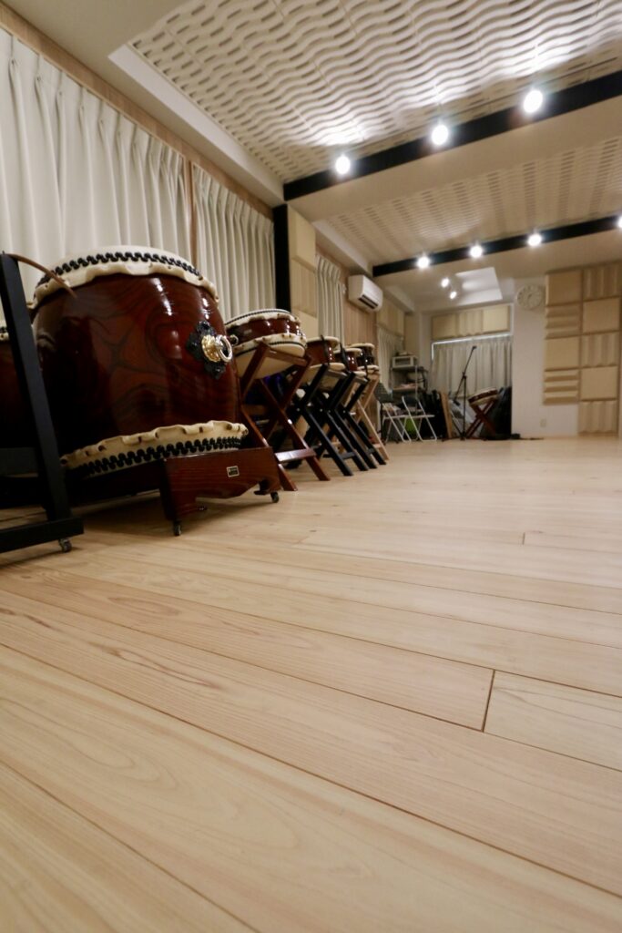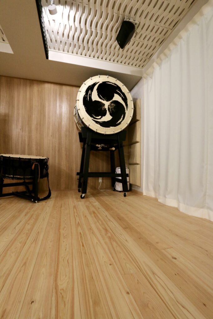 これまでは地区センターのホールを借りて太鼓の練習をしていましたが、大きな太鼓を搬送し持ち込むのが大変な作業でしたので、自宅に下階の店舗部分をスタジオに出来たら便利だし、地域の交流の場にもなるのではないかと考えました