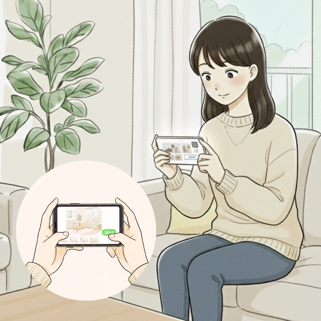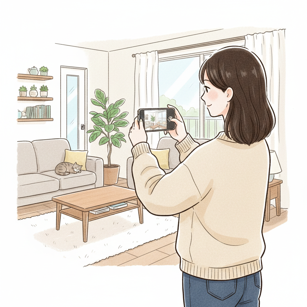 キッチン、お風呂、リビングなど、リフォームを検討している空間全体を、明るい時間帯にスマホで何枚か撮影しましょう。家具の配置、窓の位置、天井の高さ、壁や床の素材など、気になる点や変更したい部分をクローズアップした写真もあると、後でリフォーム会社との打ち合わせや、自分の要望を整理する際に役立ちます。また、幅や高さなどの簡単な寸法を測ってメモしておくと、さらにスムーズに進められます。